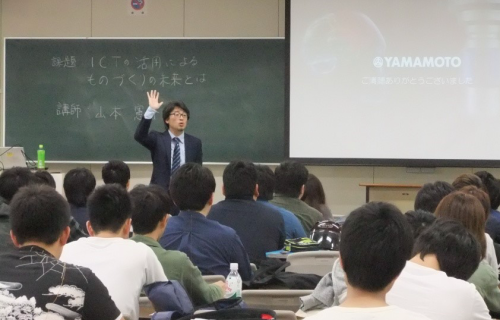 2016年5月13日(金)摂南大学機械工学科3年生約100人の皆様を対象とした講義にて、弊社代表取締役社長 山本憲吾が講義をさせていただきました。